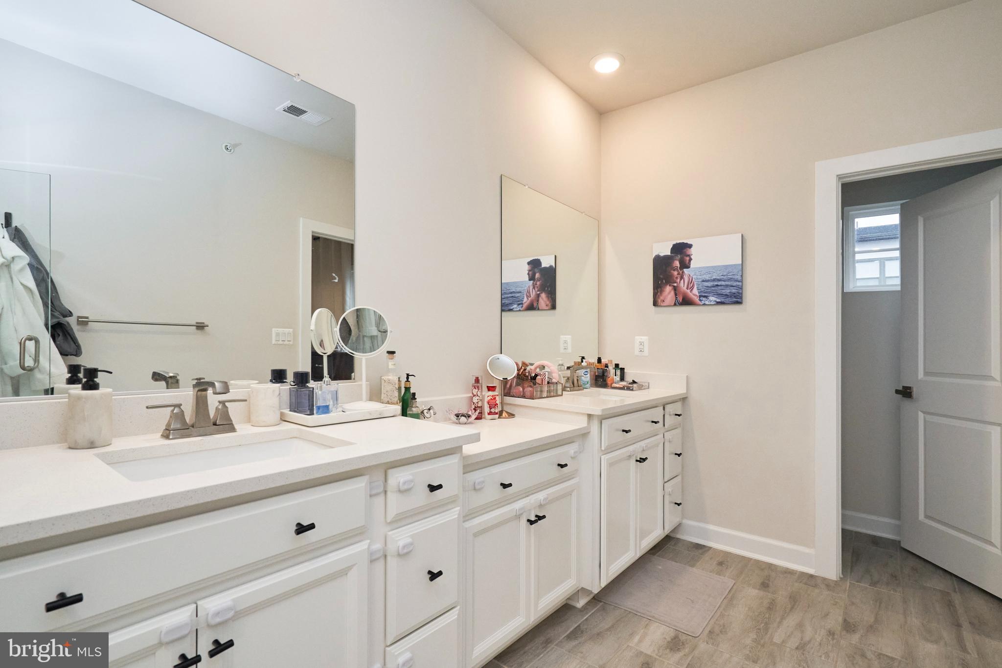Upstairs, the primary suite offers a private retreat with a generous walk-in closet and a beautifully upgraded ensuite bath. The spa-like bathroom boasts a frameless glass shower with dual shower heads and a double vanity. Two additional bedrooms on this level share a well-appointed hall bath with a tub/shower combination and dual sinks, ensuring comfort and convenience for everyone.